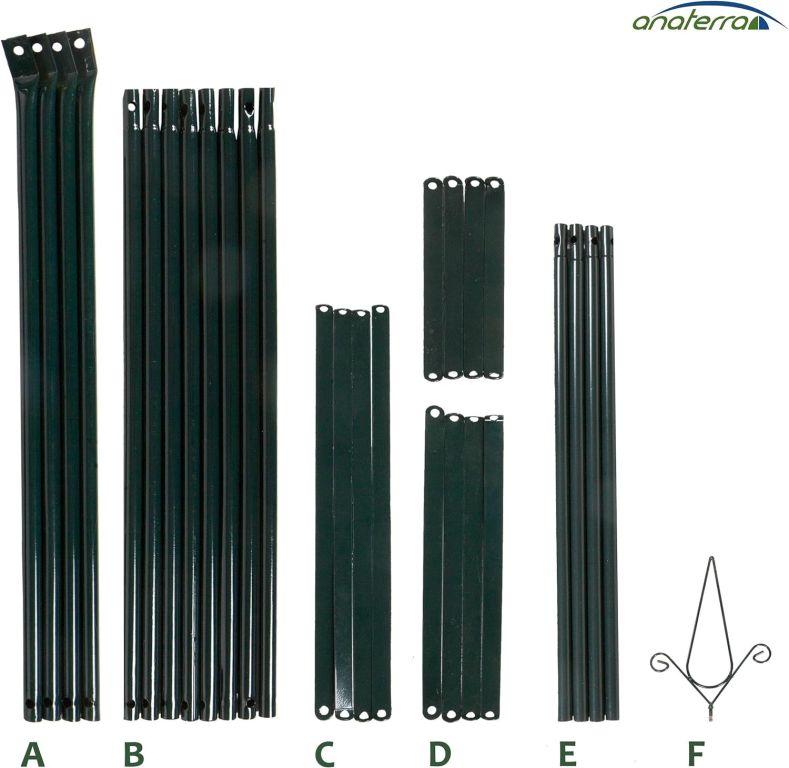 Structura este realizată din metal vopsit în câmp electrostatic, rezistent la coroziune și intemperii. Montajul este rapid și facil datorită accesoriilor incluse. Stabilitatea este asigurată de ancora de sol de 20 cm. Întreținerea este simplă, fiind suficientă ștergerea cu o lavetă umedă.