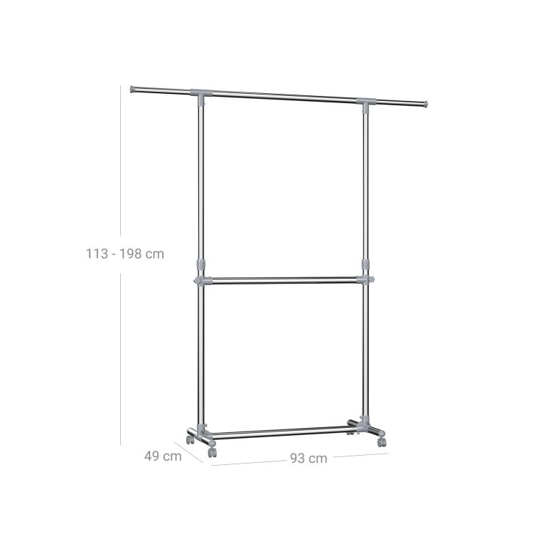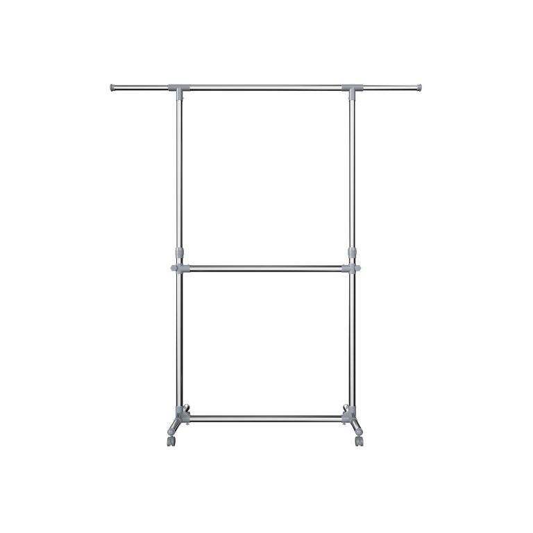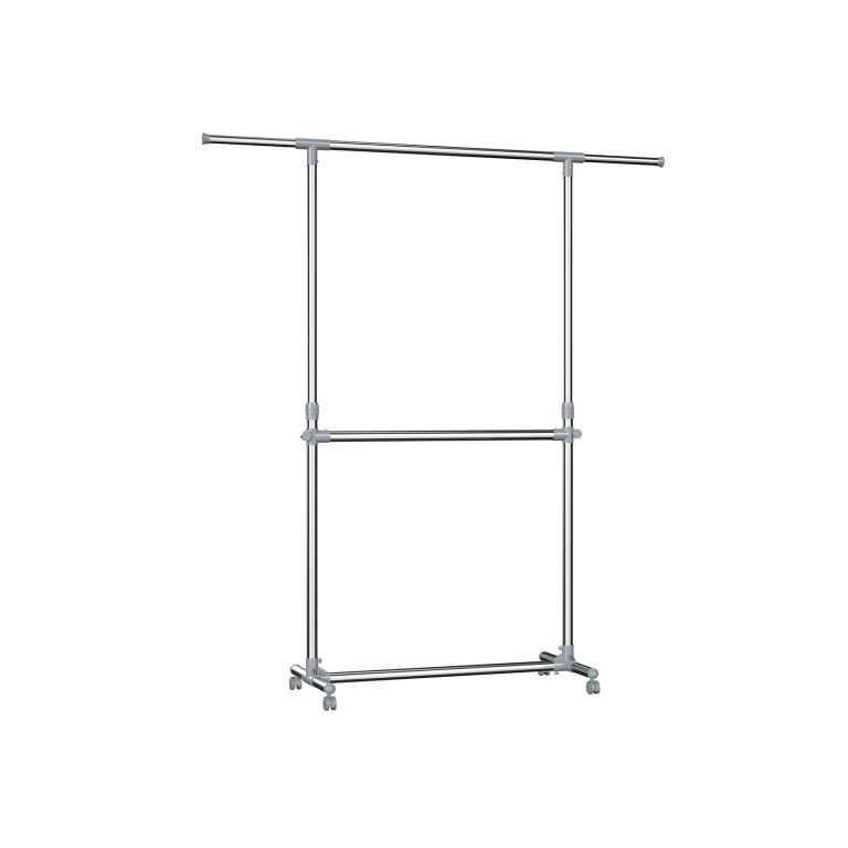 Suport mobil pentru haine, două bare, reglabil, inox, ABS