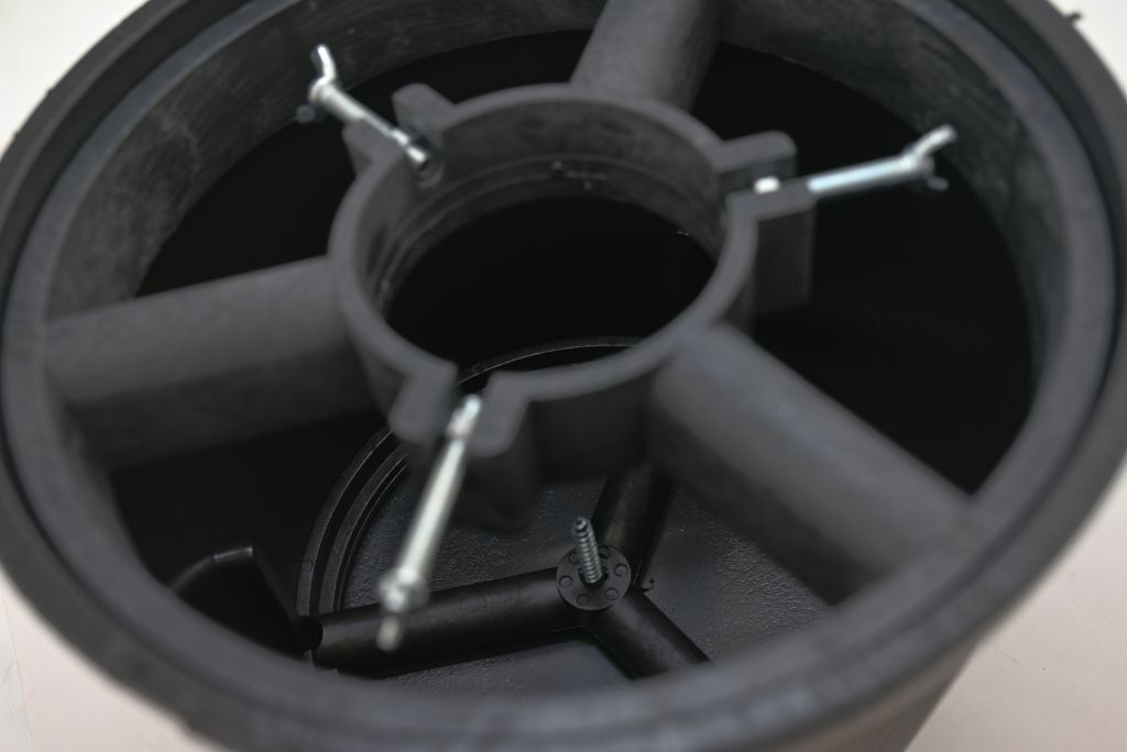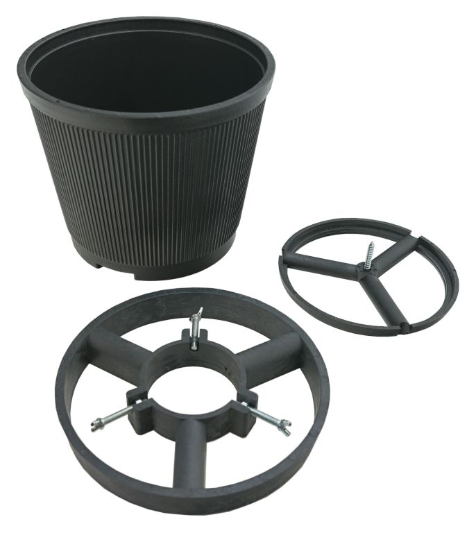 Suportul pentru pomi de Crăciun poate fi folosit pentru fixarea unui trunchi de pom (până la un diametru de 10 cm). În partea inferioară, trunchiul poate fi fixat cu ajutorul unui șurub, iar stabilitatea și ajustarea unghiului pot fi reglate printr-un mecanism cu 3 șuruburi în partea superioară a suportului. Corpul standului este fabricat din material rezistent, iar pentru stabilitate suplimentară, poate fi umplut cu apă, nisip sau pământ. După îndepărtarea mecanismului de fixare, standul poate fi folosit și ca ghiveci.