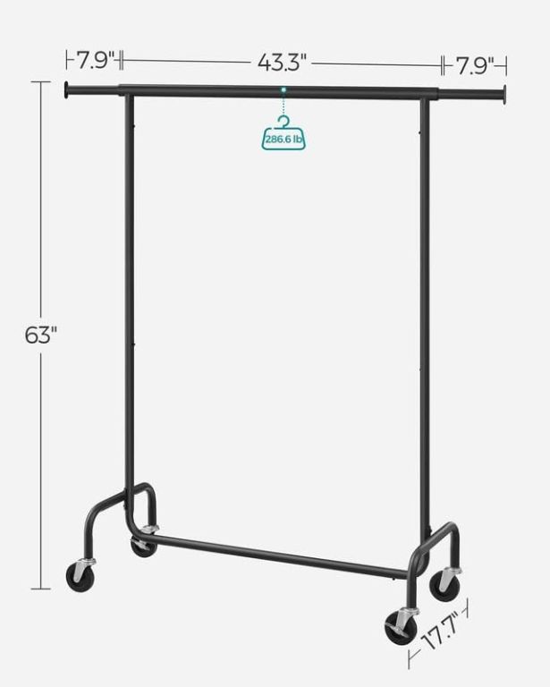 Suport robust pentru haine, extensibil, cu roți, 130 kg, ne