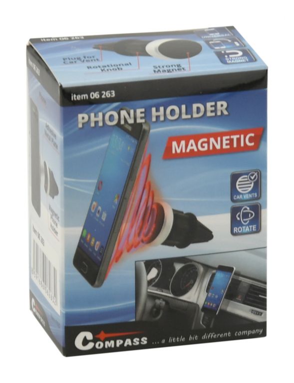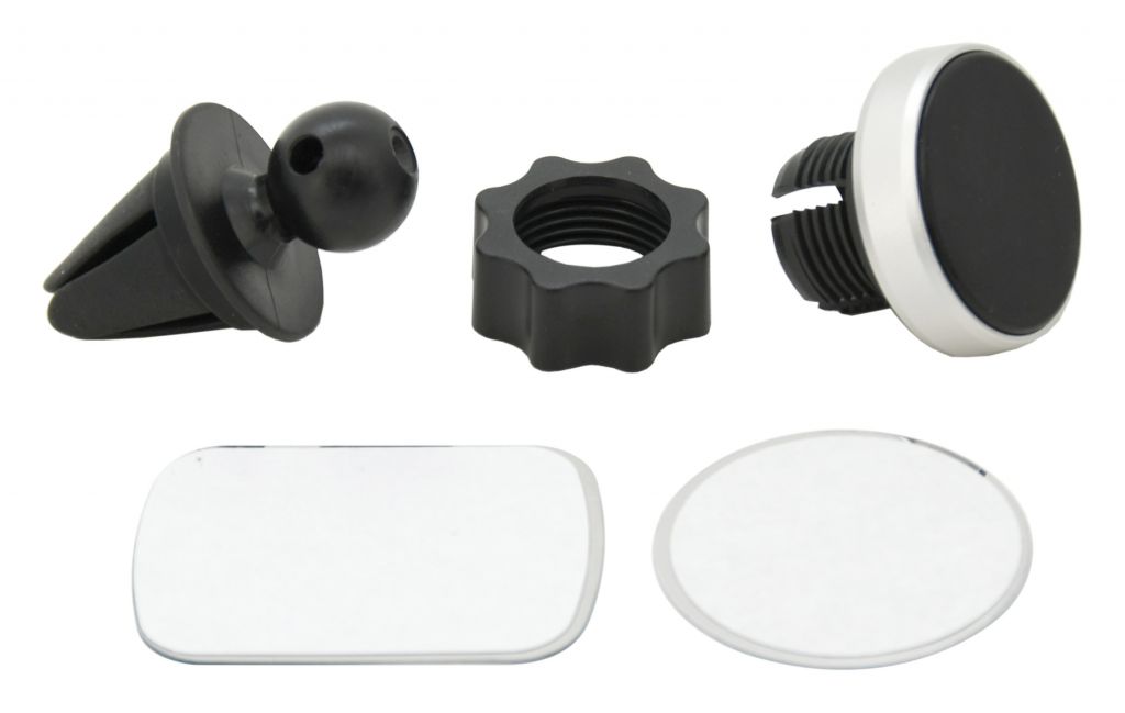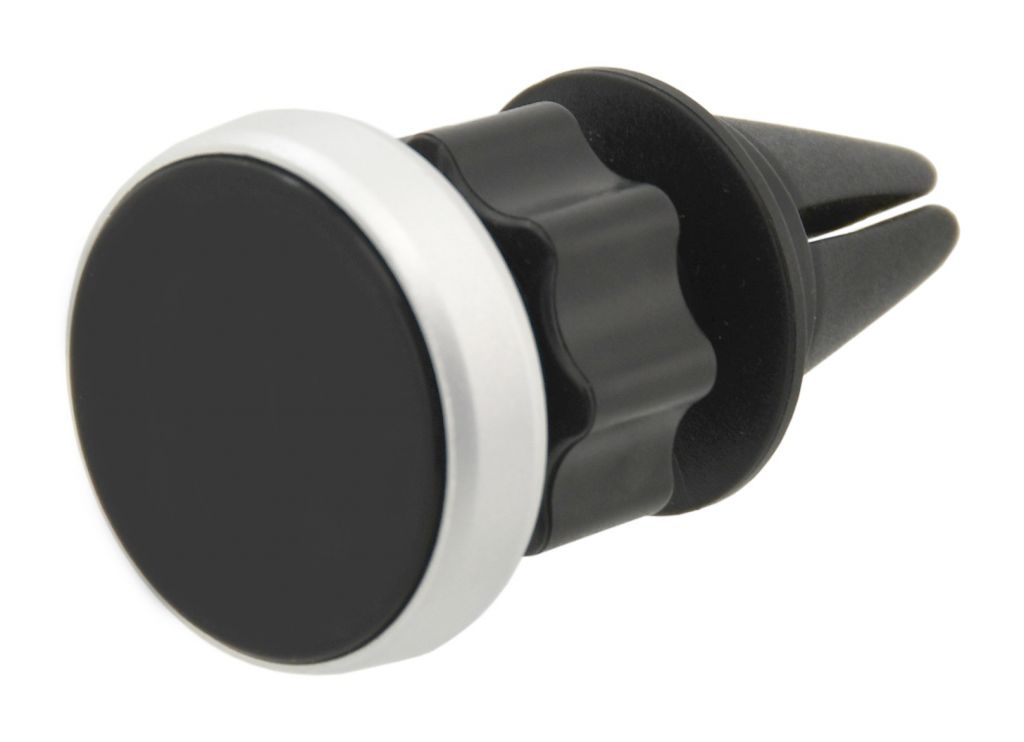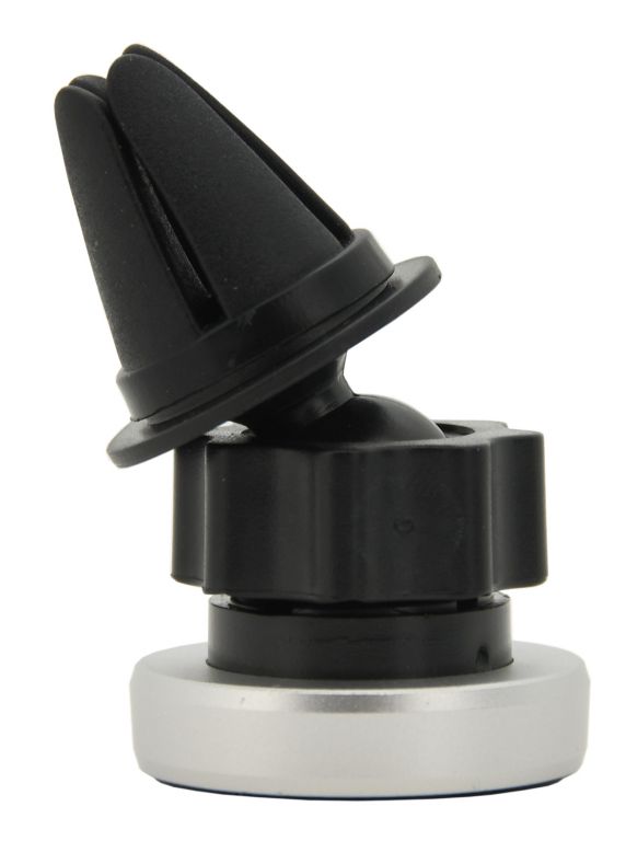 Suport universal, magnetic pentru grila de ventilație a mașinii. Corpul suportului este echipat cu o articulație cu un inel de blocare, datorită căruia este posibil să rotiți suportul și astfel să setați cu ușurință orice unghi. Cu suportul sunt incluse autocolante magnetice, care sunt plasate pe spatele telefonului pentru a asigura atașarea imediată la suport.