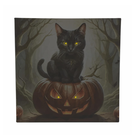 Tablou decorativ LED pisică pe dovleac, timer, 40x40 cm