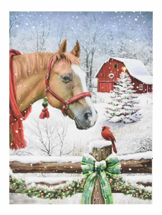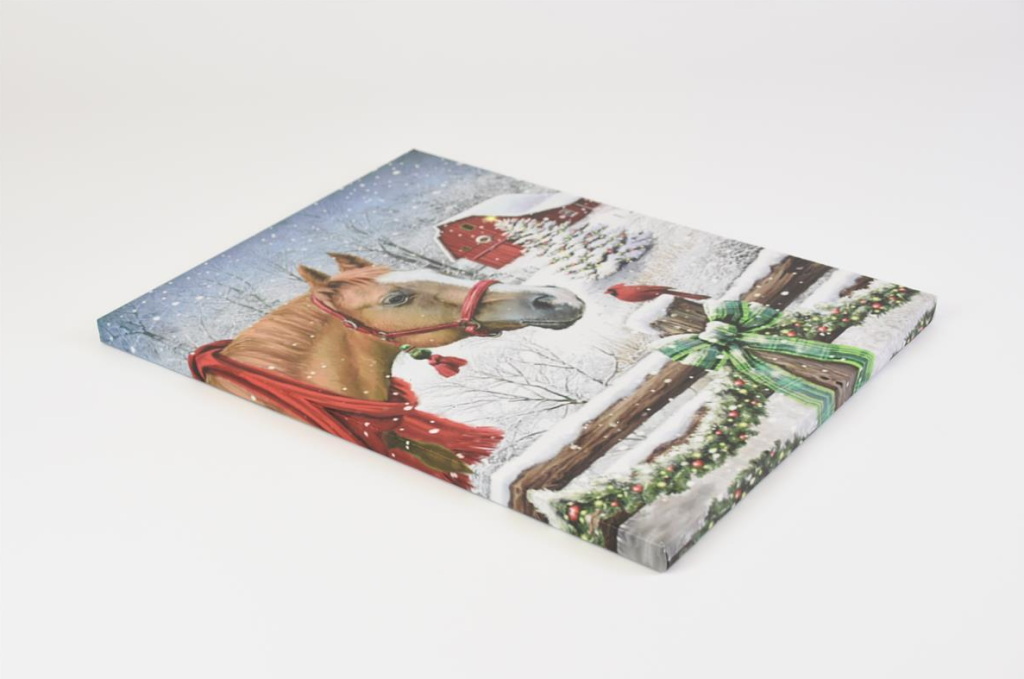 Tablou LED decorativ cu cal, vrabie și fermă, timer, 30x40cm