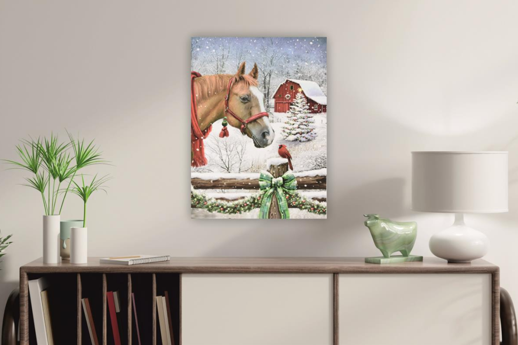 Adăugați un accent de poveste în casa dumneavoastră cu acest tablou LED decorativ, ce surprinde un cal și o vrabie într-un peisaj de iarnă magic. Fiecare detaliu al imprimeului creează o ambiantă plină de liniște și eleganță, potrivită pentru orice cameră sau birou, dar și ca idee de cadou special.