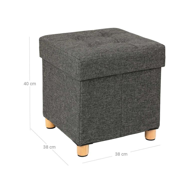 Taburet depozitare gri închis, 38x38x40 cm, capac moale, MDF