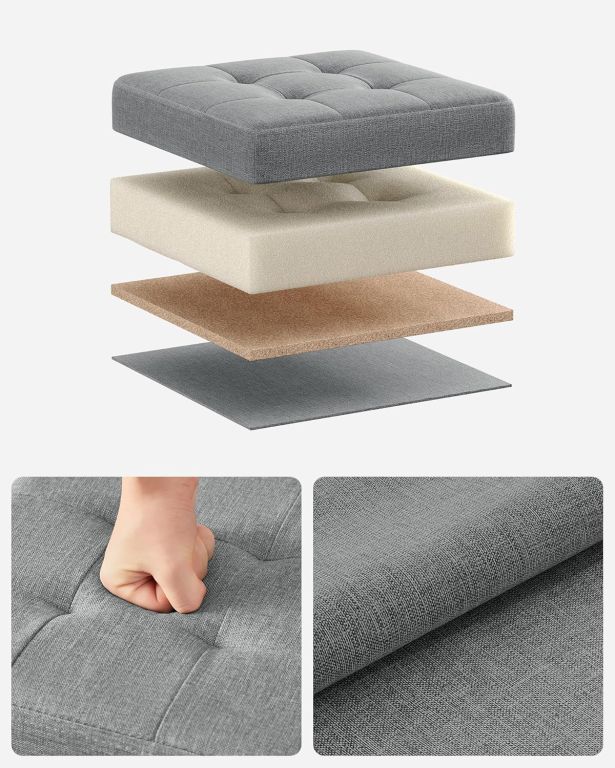 Taburet pliabil SONGMICS, design modern, spațiu depozitare, confort și rezistență.
